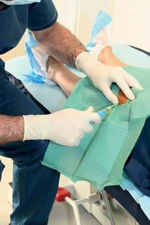 - Aplicação: O plasma rico em plaquetas é então injetado na área afetada (articulação ou músculo), na maior parte das vezes ecoguiado. O objetivo é reduzir o processo inflamatório, retardar a progressão da doença degenerativa da cartilagem articular.